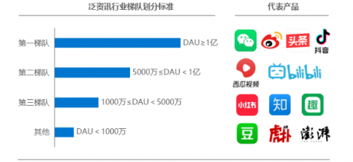 在泛资讯行业市场竞争剧烈、产物浮现爆发式增加确当下,无论是综合伙讯类、社交平台类、常识分享类仍是短视频类的产物,都有着分歧的计谋定位,却仍存在交叉竞争。今朝,泛资讯范畴的市场格式已相对稳固,梯队划分显明,流量在以微信、微博、本日头条及抖音等为代表的头部企业高度凑集。
